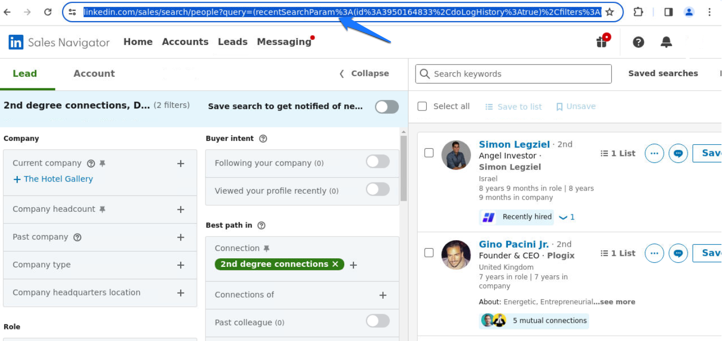 After you click, Sales Navigator will switch the view into a regular search result. That’s your cue—the URL in your browser will change.