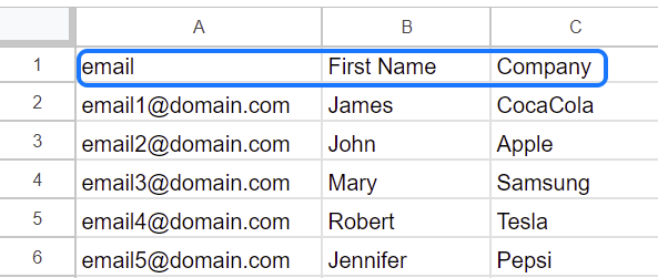 - To send emails using a CSV as your lead source, you need one essential column: a column named ‘email’ (in lowercase).