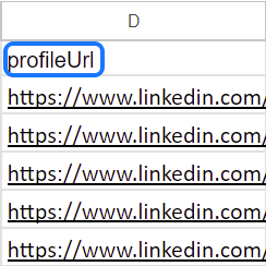 - For a combined email + LinkedIn campaign, you'll need two columns: one for email addresses and another for profile URLs of your leads. Make sure that the column with profile URLs is named exactly profileUrl (with 'U' in uppercase).