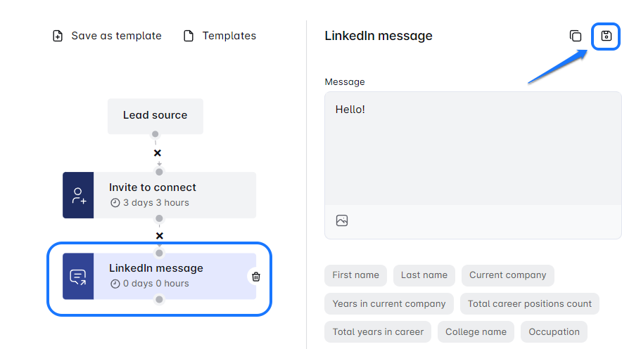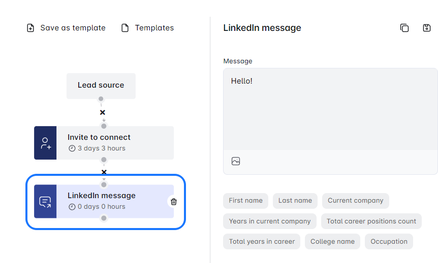 Save time with the Horion Marketing’s step copy-and-paste feature! Easily duplicate steps like Invites, Messages, or Emails, and customize them in sequence. Save key steps as templates in the Template Library for future campaigns. Streamline your workflow and boost efficiency! 🚀 Need help? We’re here for you.